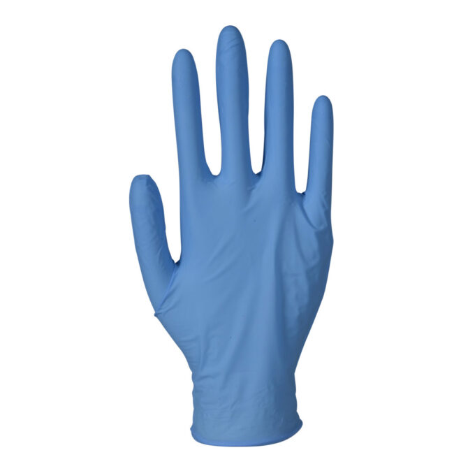 Elastisk engångshandske i nitril som formas efter handen, puderfri, latexfri.