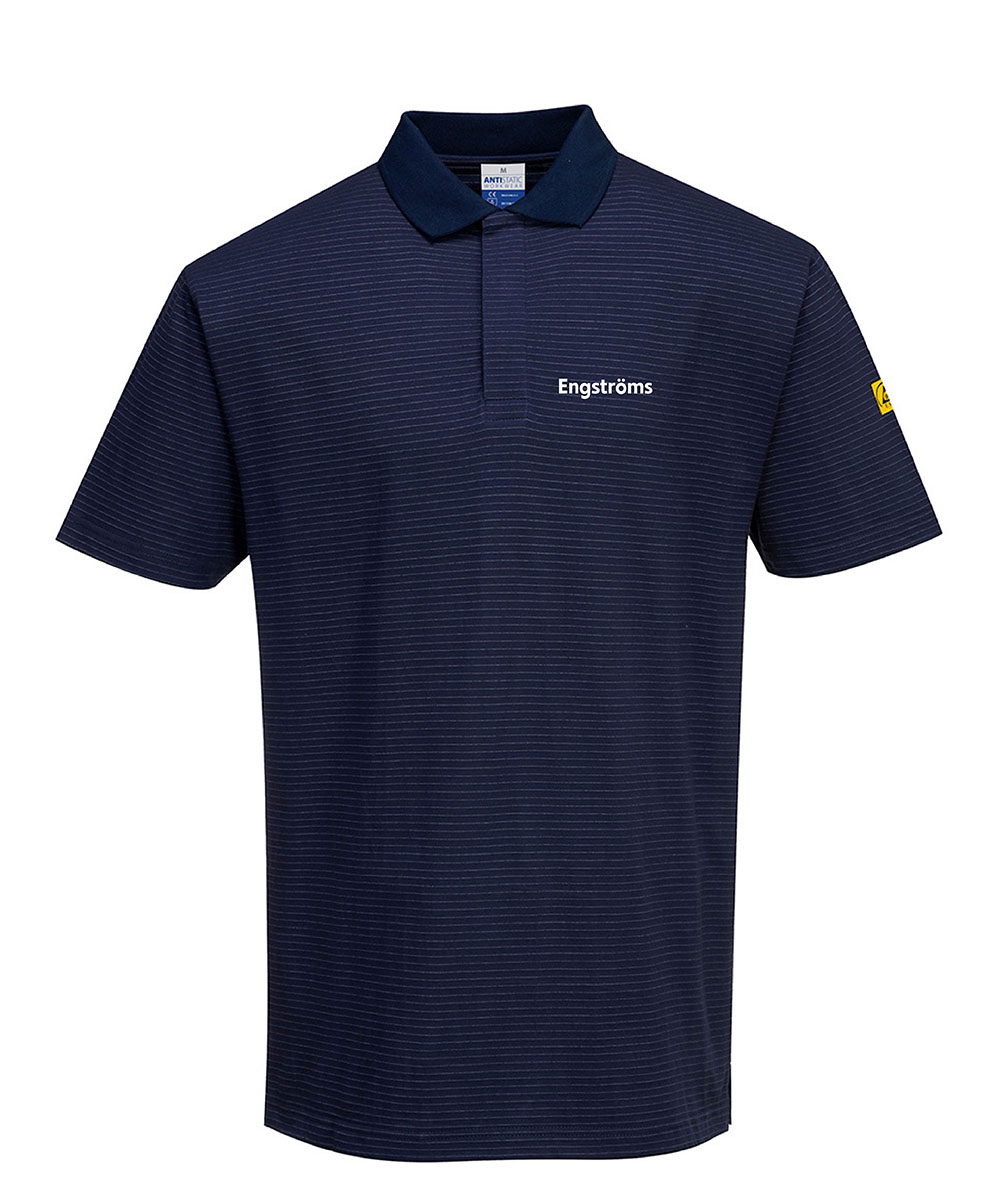 En bekväm ESD piké som minskar risken för elektrostatisk uppladdning. Ribbad krage och en dold knapp i knappslån.