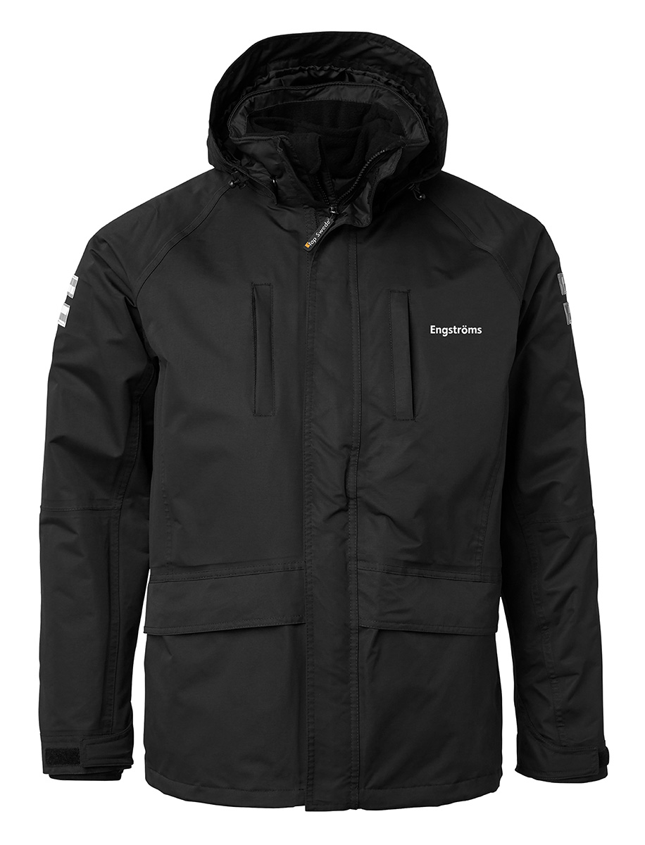 Går bra att använda var och en för sig eller tillsammans. Avtagbar huva. Reflexdetaljer för bättre synbarhet. Reglerbart ärmslut.