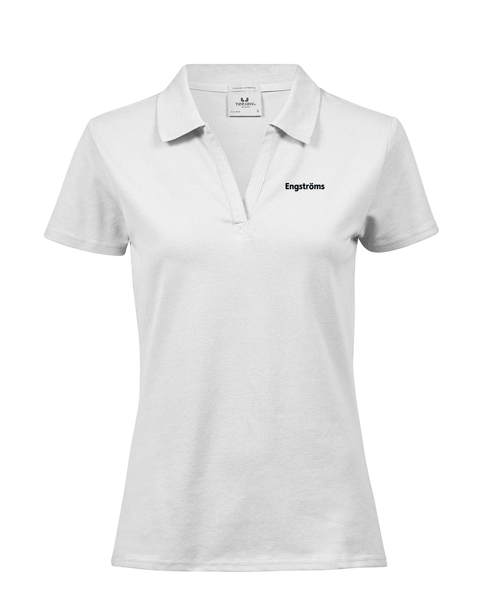 En elegant kvinnlig piké tillverkad av ekologisk bomull/elastan vilket ger maximal komfort och perfekt passform. Den har en sportig V-ringning.