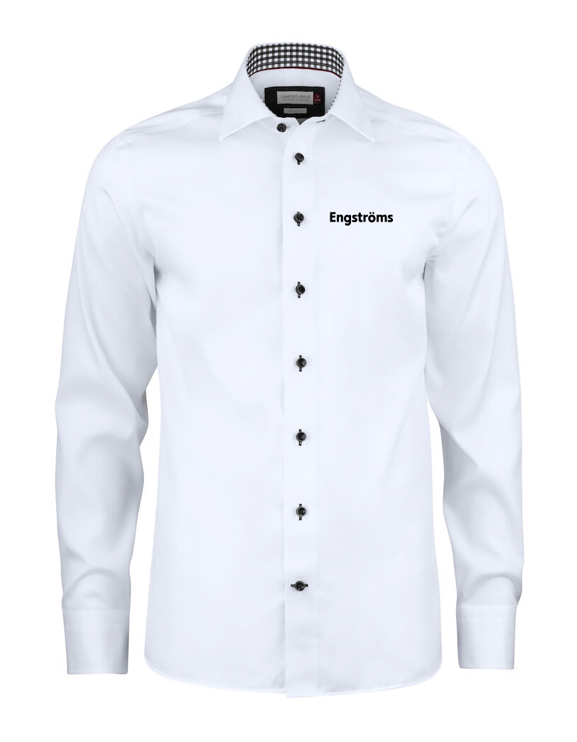 Skjortan är tillverkad i högkvalitativ och tät twill som ger en perfekt glans i skjortan och gör den mindre genomskinlig.