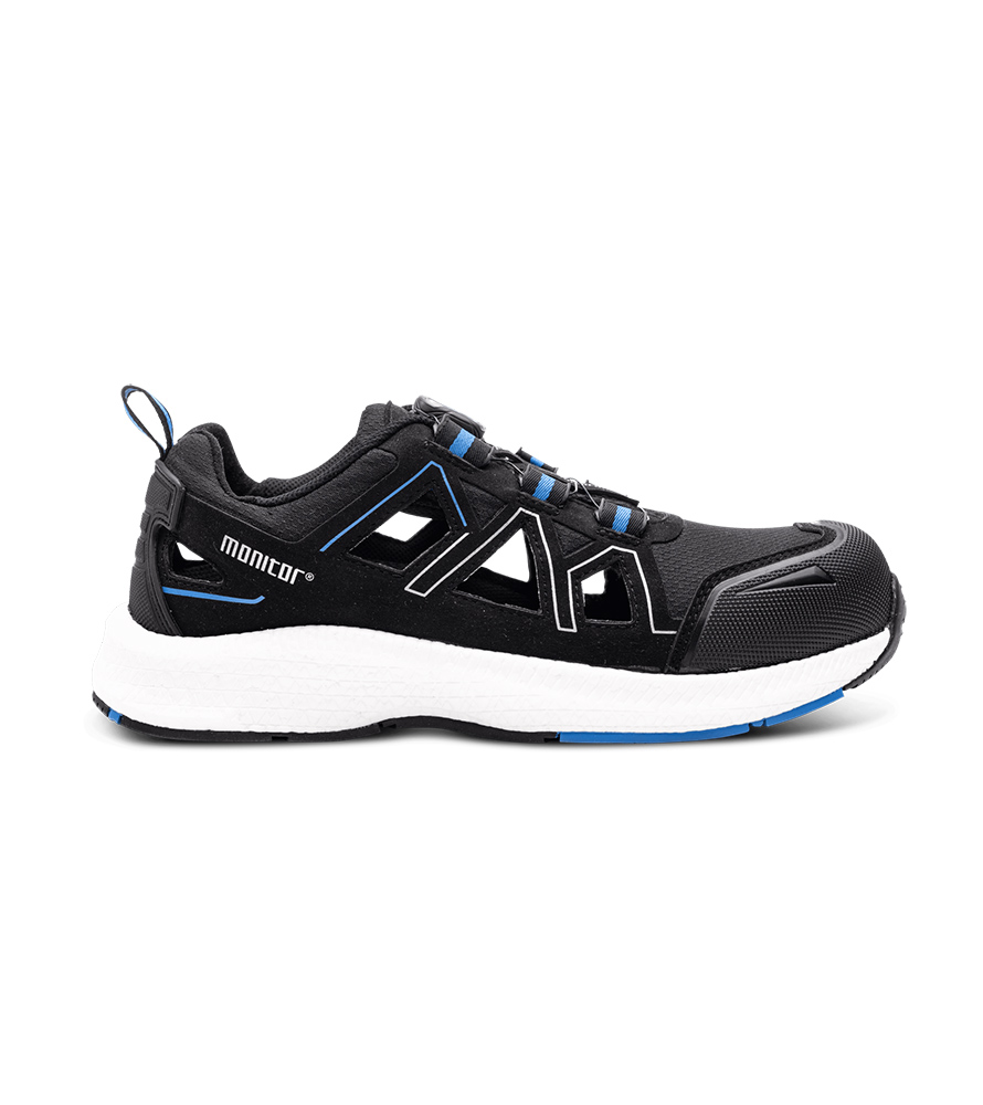 En mycket bekväm och lätt skyddssko med tilltagna öppna fält på ovansidan som gör skon otroligt luftig. Också för att göra skon extra hållbar har den ytterligare förstärkning i häl och tå. Extremt mjuk mellansula tillverkad i ETPU material som har en så kallad Return – Rebound på över 58% samt en yttersula tillverkat i halksäkert gummi.